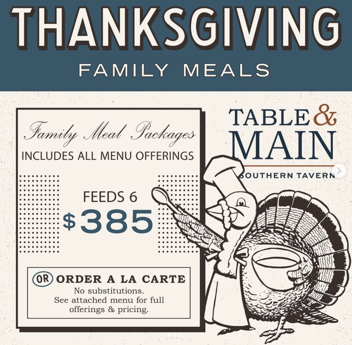Table & Main in Roswell is going to be serving dinner with all the fixins’ this holiday season.