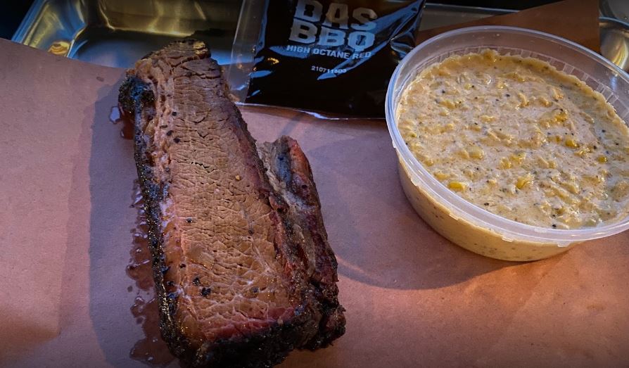 Here’s what one reviewer says about Das BBQ: “Good BBQ, brisket is juicy. Pork ribs are fall of the bone tender, you can even eat (some) of the bones if you like. Chicken is chopped not pulled and only slightly above average. Sides are okay, but overpriced. My favorite is the creamed corn (more like cheesed corn). They generally are very quick, sides are portioned out before hand and usually you get your food within minutes.