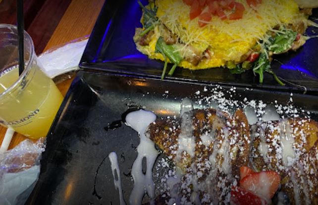 Here’s what a customer says about Fins and Feathers: “This was my first time dining in at Fin and Feathers for brunch. We had a reservation and were seated immediately. The vibe was great. The hookah and the DJ was the highlight of the entire afternoon. The bottomless mimosas were good (I recommend the peach mimosas). I ordered my steak medium and it came out well-done so that’s was a bummer. But I had some of the waffle and home fries which were amazing.”
