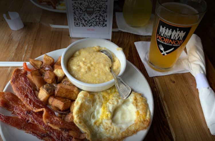 Here’s what one reviewer says about the food at Hobnob Neighorhood Tavern. “This was my first time eating here. I was surprised at how good the food was. We got fast service and hot food. Our server was amazing. She was energetic and quick. I will come back to this location again. They do practice social distancing the best they can. Everyone on staff wears masks.”