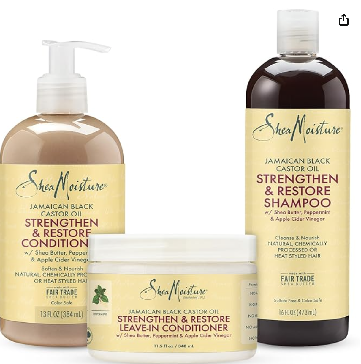 Shea Moisture Jamaican Black Castor Oil Combination Pack – Strengthen, Grow & Restore – Shampoo, 16.3 Oz, Conditioner 13 Oz. & Leave-In Conditioner 16 Oz.