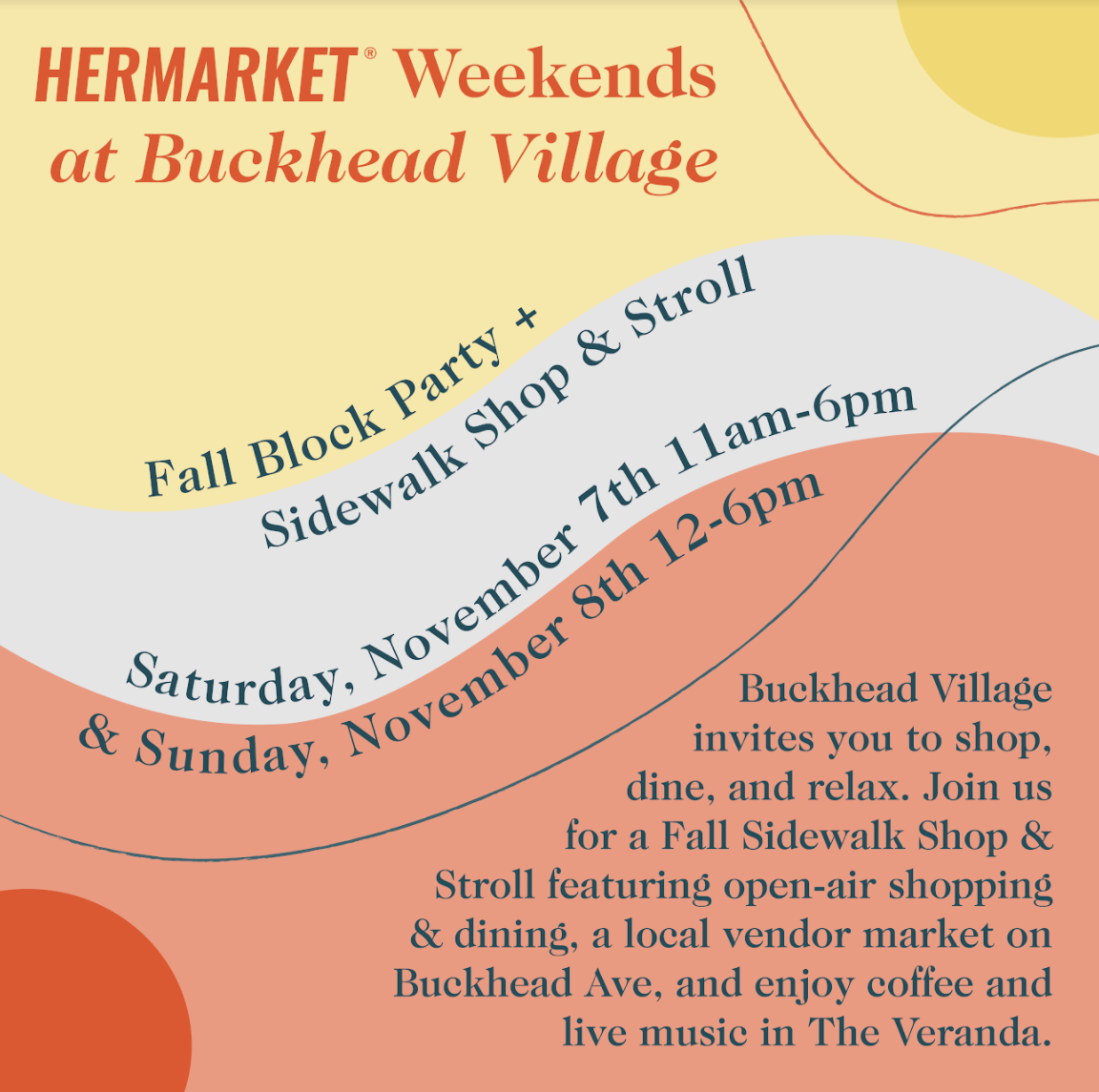 Visitors can also enjoy coffee and live music at The Veranda. Also on Saturday and Sunday, HERMARKET®️, a community and marketplace for woman-owned indie brands, will be popping up on Buckhead Avenue and feature products for purchase from makers including Suakoko Betty, Candy x Paints, Roots ATL, Tranquilo Teas and more.