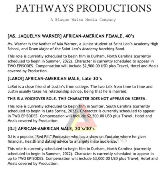 NOW CASTING PAID EXTRAS (Ages 30 +) to portray ROADSIDE MOTEL GOERS for the NEW DC Comic series “NAOMI” for FRIDAY, 1/21/2022.CAB Castings, LLC. is looking for PAID EXTRAS for a new series on THE CW based on DC Comics series “NAOMI” that will be filming here in Atlanta, GA.We are casting for the following specific extras for scenes on FRIDAY JANUARY 21, 2022 in Atlanta, GA:– ROADSIDE MOTEL GUESTS***Ages 30 +***All Races*** Rate: $100/8 + $25 per Covid Test*** Prelim Call Time: TBD (Please have open availability on day of interest)***WE ASK THAT WHEN BOOKED AS A PAID EXTRA, YOU BE PREPARED TO WORK AT LEAST A 12HR WORK DAY AS WE DONT KNOW HOW LONG YOU WILL BE SPECIALLY ON SET… SO PLEASE HAVE OPEN AVAILABILITY FOR THE DAY YOU SUBMIT FOR!!! ***COVID TESTING:***Must be available for COVID 19 testing at our testing location close to Fulton Industrial. The exact location we will disclose at booking.If interested in working this day, your 1 MANDATORY TESTING DATE IS:– THURSDAY 1/20/2022 (Between 8am and 12pm ONLY)-Testing is NASAL PCR and you will receive a $25 COVID TESTING BUMP on your voucher the day you report to set for each test taken. YOU MUST REPORT TO SET TO RECEIVE THIS BUMP! Test from other productions are not valid on this set as each production has their own Covid guidelines and labs. Your results must come from the designated lab that all cast and crew use on this production.The rate for this specific paid extra on this production is $100 for 8hrs of work (Paid time in a half each hour after 8 hrs.), which you will receive in the form of a check in the mail 2 to 3 weeks after filming.If available, please email the information below to mailto:NaomiBGextras@gmail.comw/ Subject Line: MOTEL GOER 1/21PLEASE INCLUDE ALL INFO BELOW:– Name– Number– Age– DATE OF BIRTH. (FOR COVID TESTING PURPOSES)– Height– Weight– Sizes (Shirt, Pants, Shoe, etc.)– Race– Do you have visible tattoos? If so where?– 2 RECENT PICTURES (1 Head shot and 1 Full body)*********PLEASE INCLUDE ALL INFORMATION ABOVE IN YOUR EMAIL FOR PROPER BOOKING!!!A member from CAB CASTINGS, LLC. will call you to book your attendance in a scene and confirm availability if interested in booking you for the project.***SERIOUS INQUIRIES ONLY*********PLEASE INCLUDE ALL INFORMATION ABOVE IN YOUR EMAIL FOR PROPER BOOKING!!!