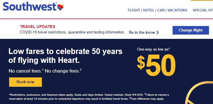 One of Southwest’s most popular fares is its cheap $49 flights, which typically cover cities between 300 to 500 miles from each other.