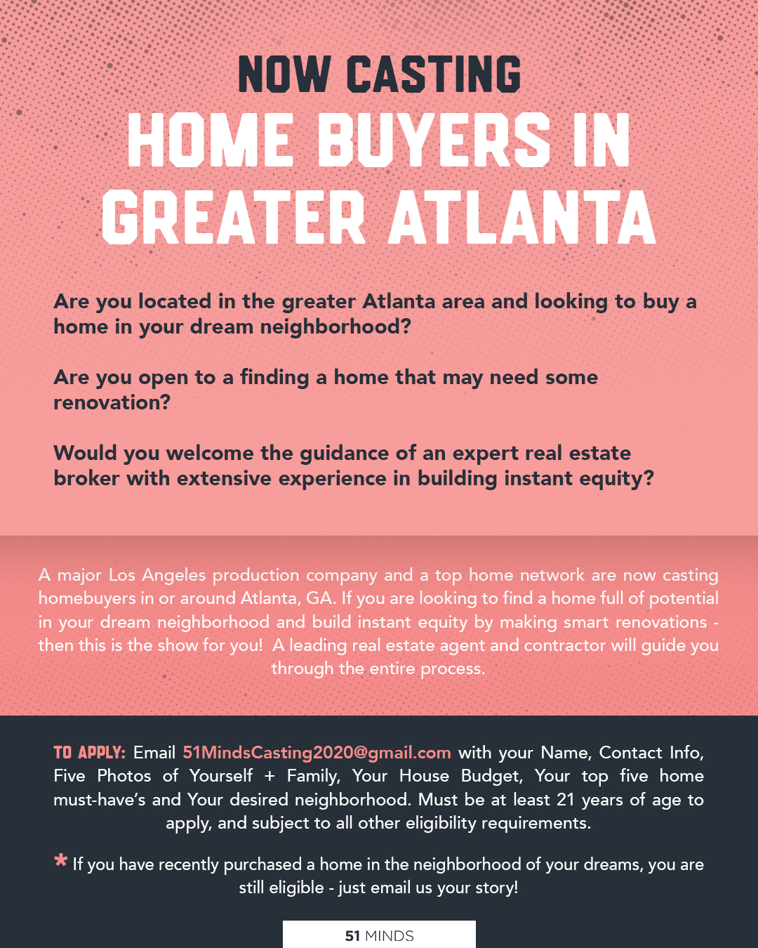Are you looking to buy a home in metro Atlanta? There’s a new reality TV show that is casting for people and families who are in the homebuying process.