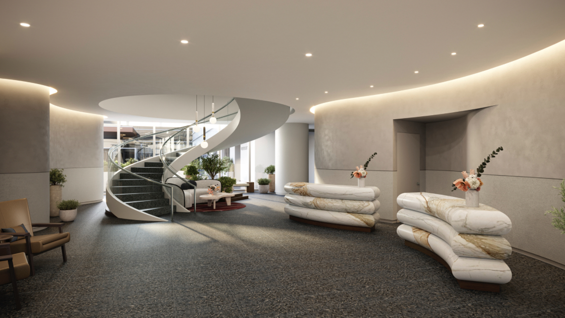 Guests will be greeted by an entry vestibule bathed in dappled natural light, setting a serene tone throughout the interior