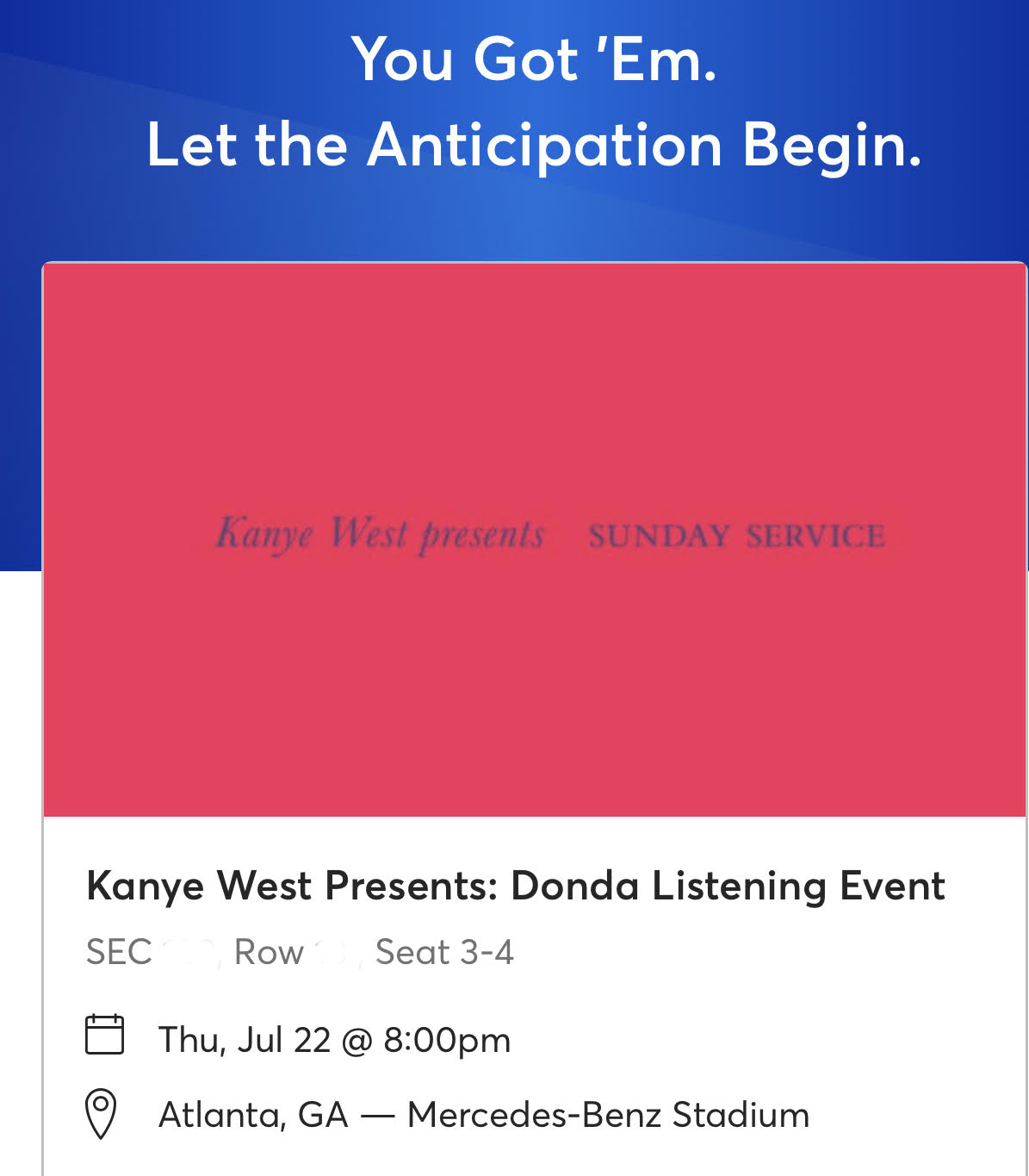 If you’ve never been to Atlanta’s Mercedes-Benz Stadium, the acoustics are perfect for the big sounds of an artist like West. The cavernous hallways in the Merc-Benz will help circulate the booms and baps of his music like few stadiums can.