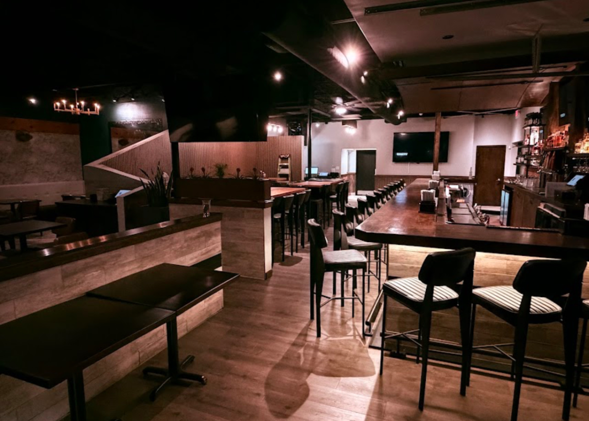 Step inside to find a spacious dining room wrapped in dark woods and soft, ambient lighting, perfect for lingering over a meal.